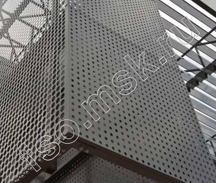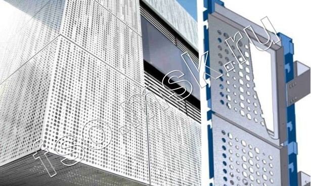 - панели фасадные перфорированные стандартных размеров и нестандартные, кассеты