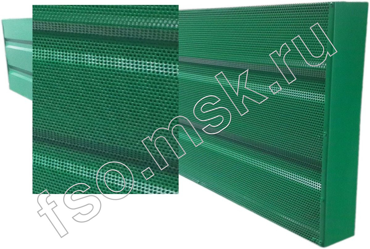 Акустические панели перфорированные шумопоглощающие (уличные) 100.500Предназначены для эксплуатации на улице в составе шумозащитного экрана, акустического барьера, звукоизоляционного ограждения, шумопоглощающего забора. Рекомендованы для установки вдоль автомобильных дорог, железных дорог, аэродромов, взлётных полос. Вандалоустойчивые, выдерживают удары камней, летящих из под колёс автомобилей.